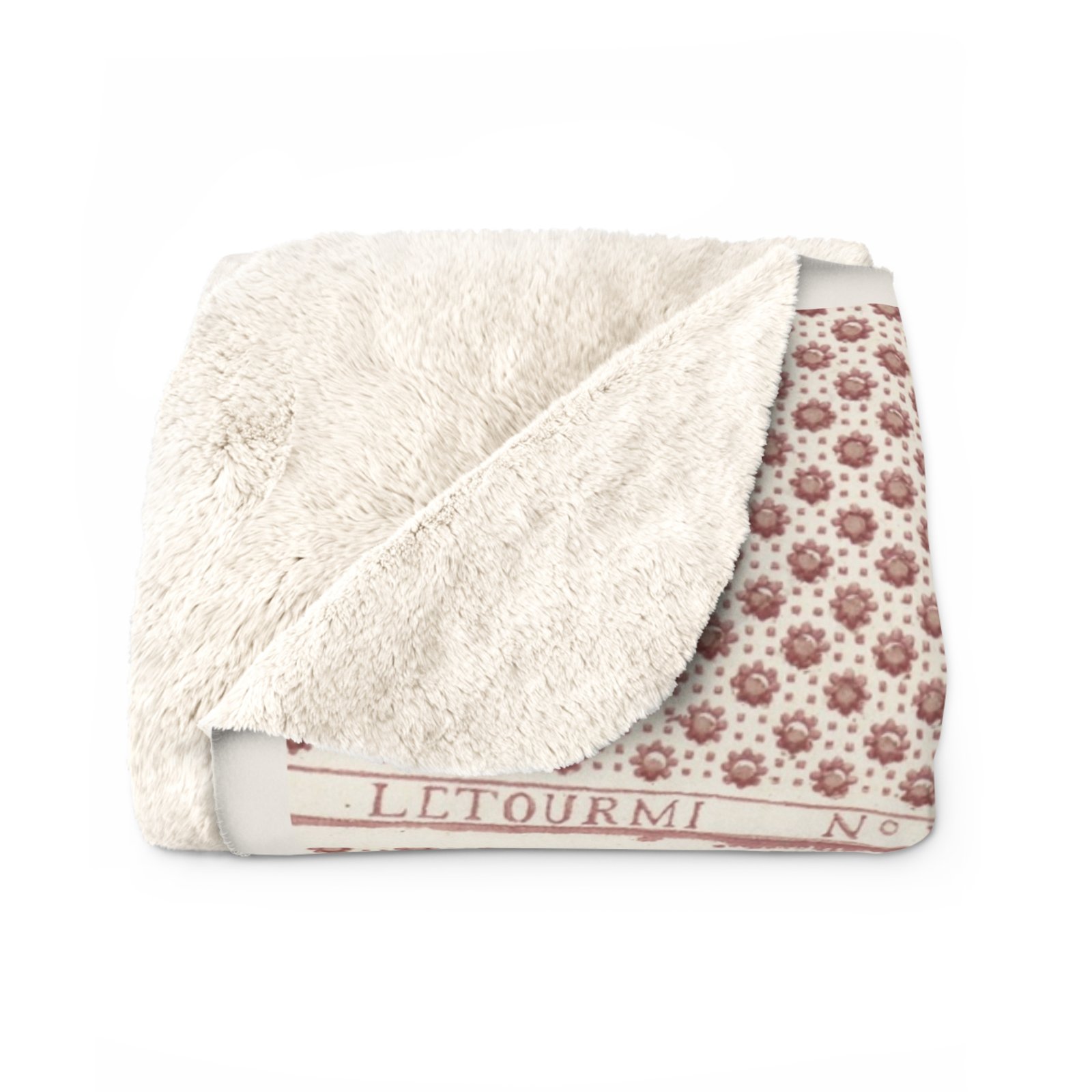 Vintage French Blush Sherpa Blanket — Cozy Plush Throw with Cream Sherpa Backing